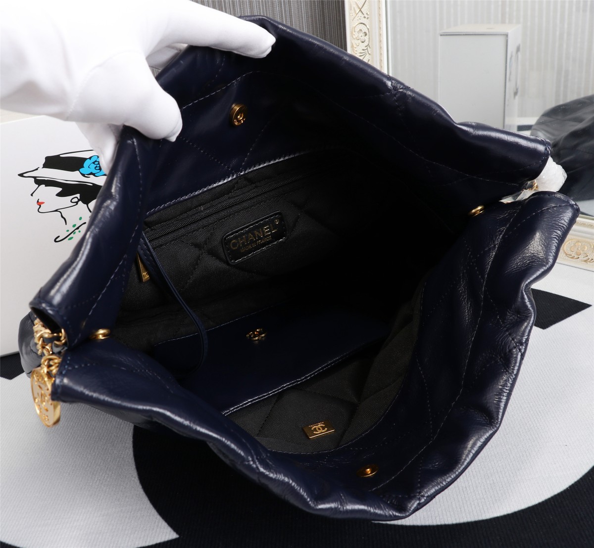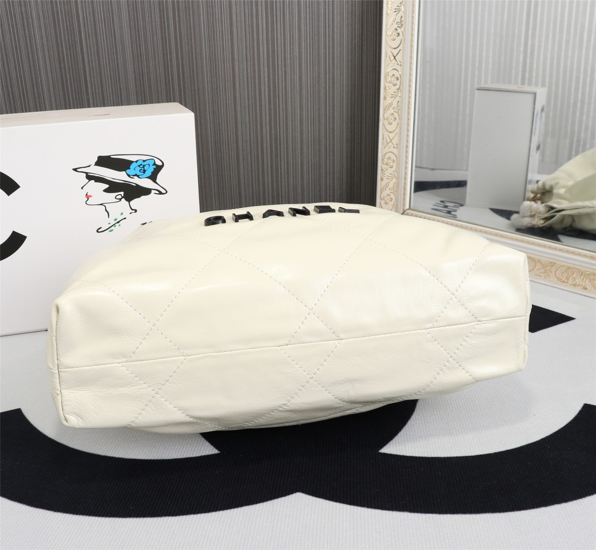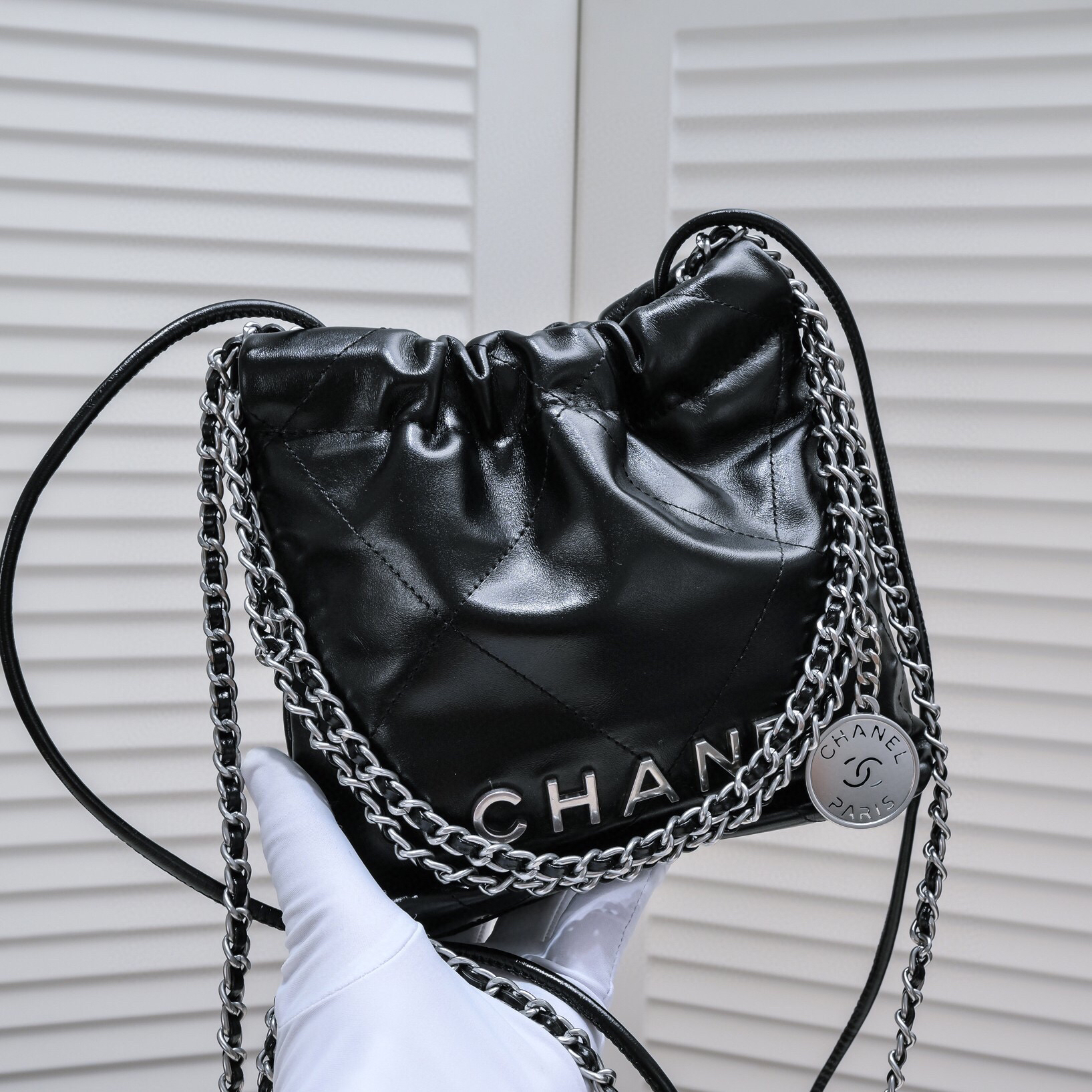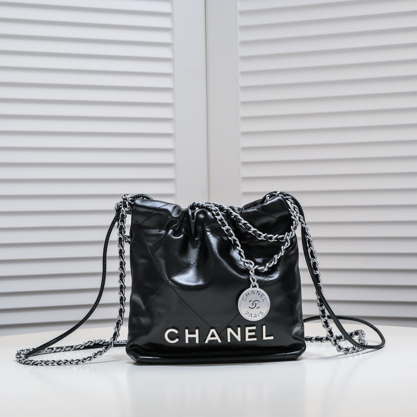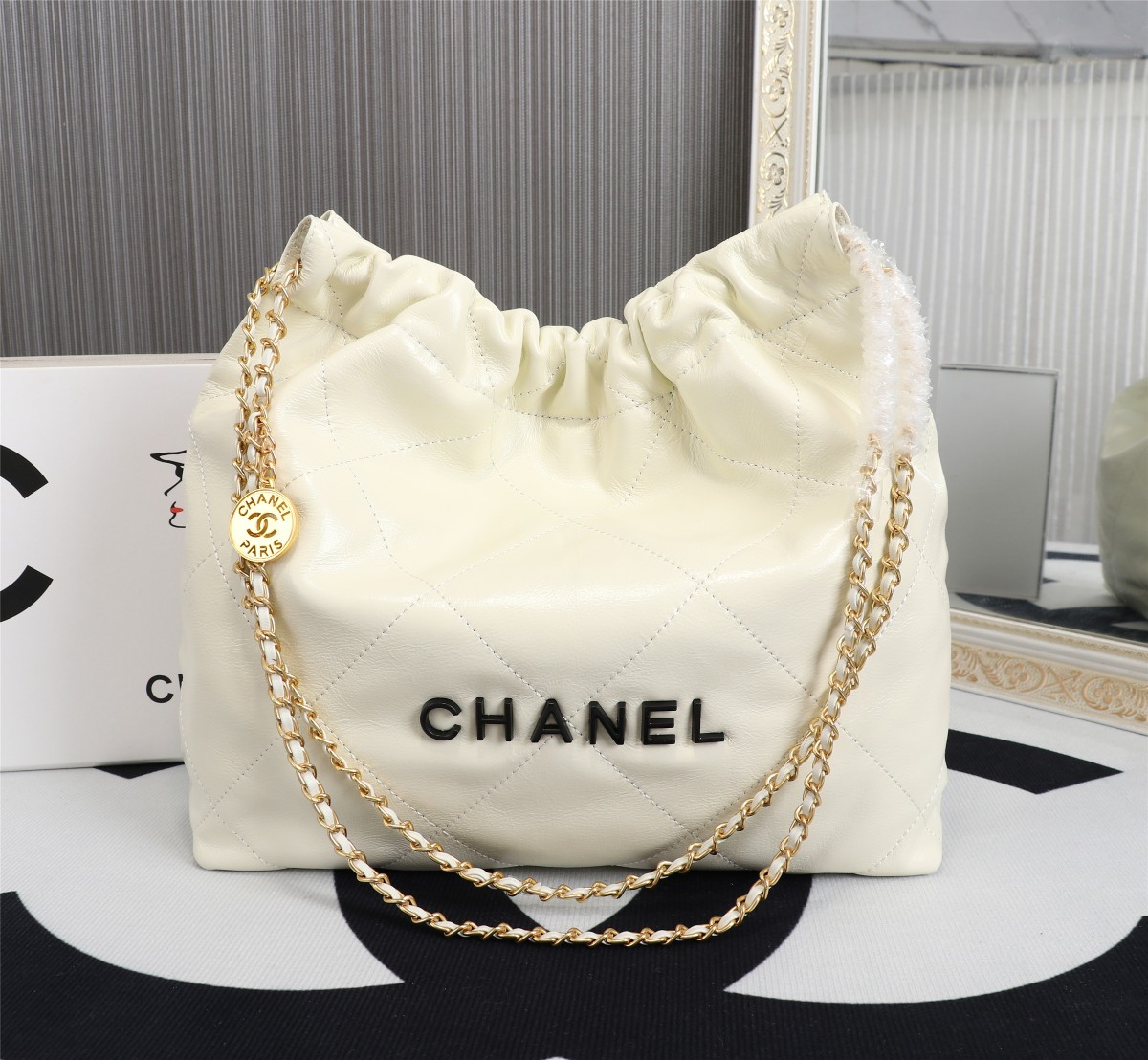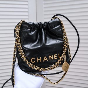 Confeccionado con una piel conbrillo flexible y resistente, y adornado con la emblemática doble C en tono dorado.