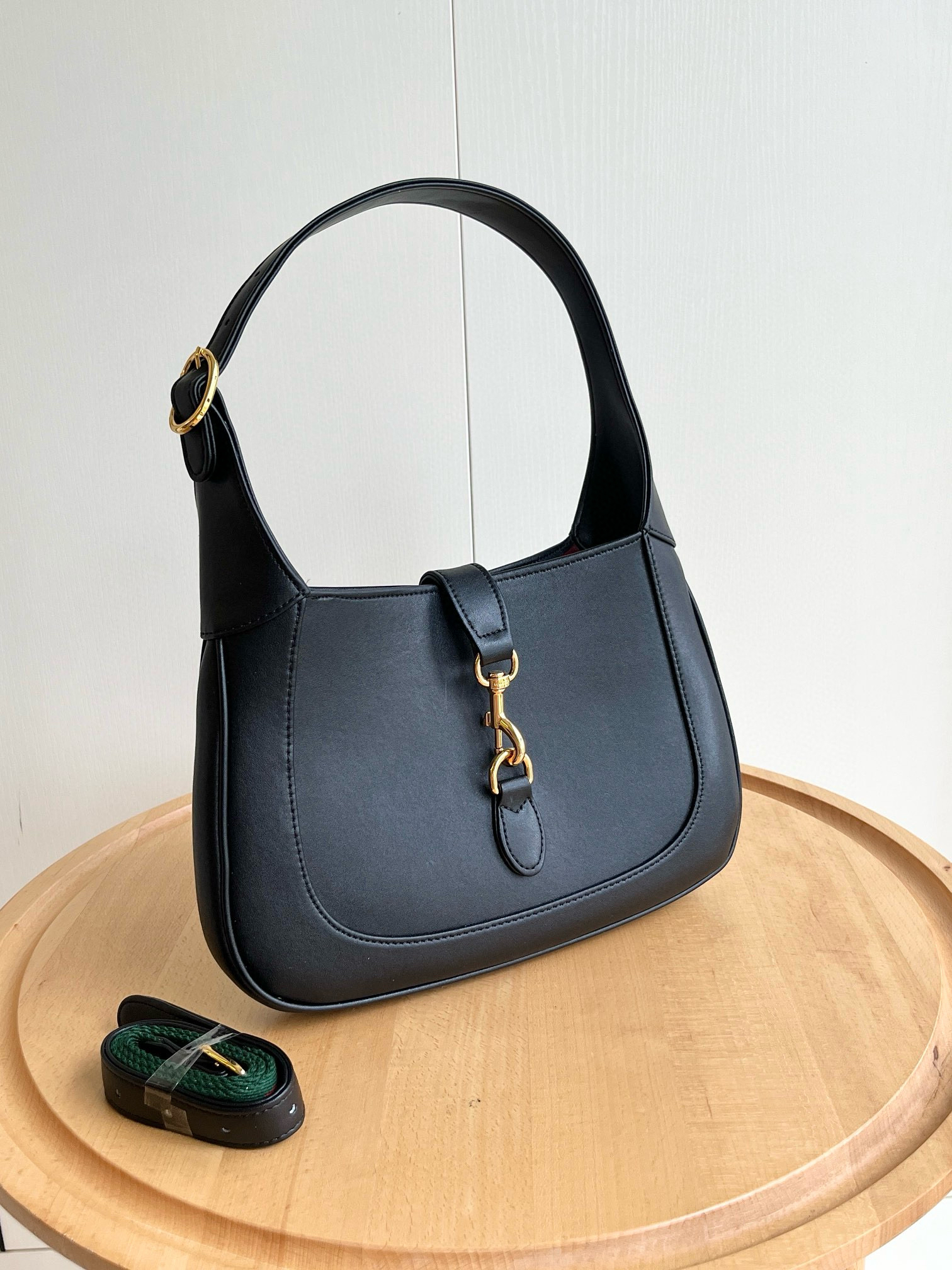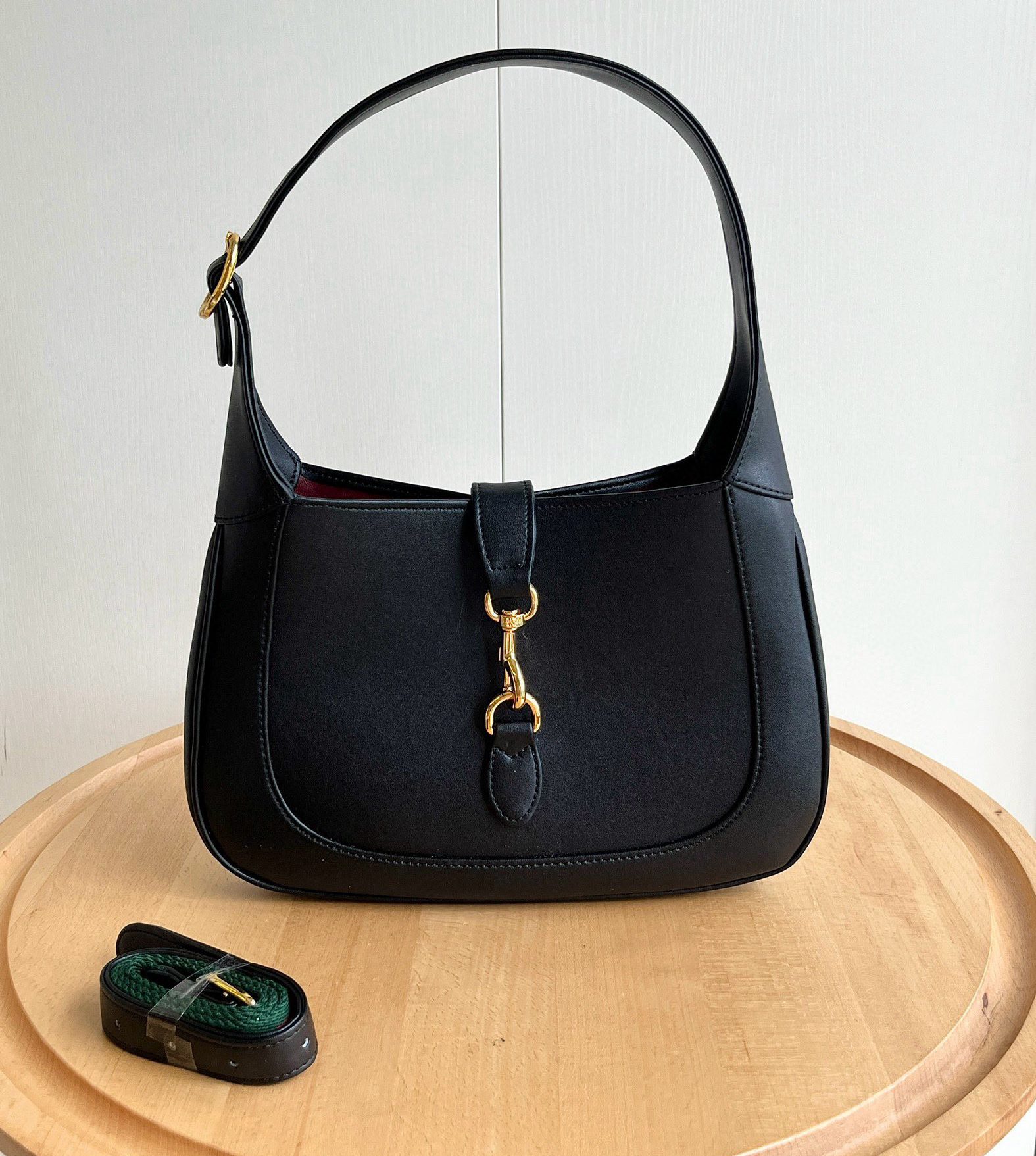 Bolso en piel negra, adorno de tono dorado, forro de microfibra Asa superior y correa de cadena para el hombro y cierre con cinta de pistón.