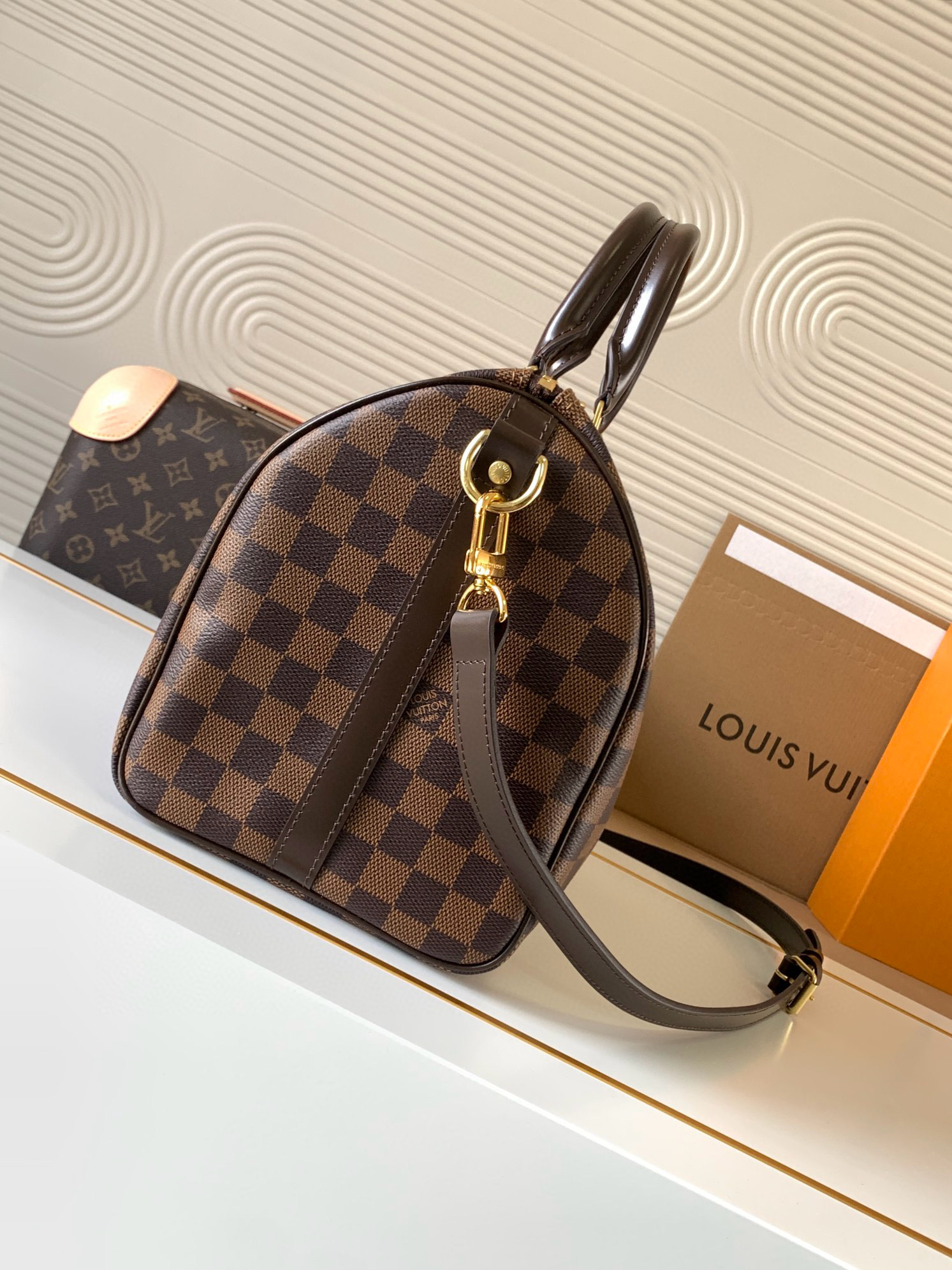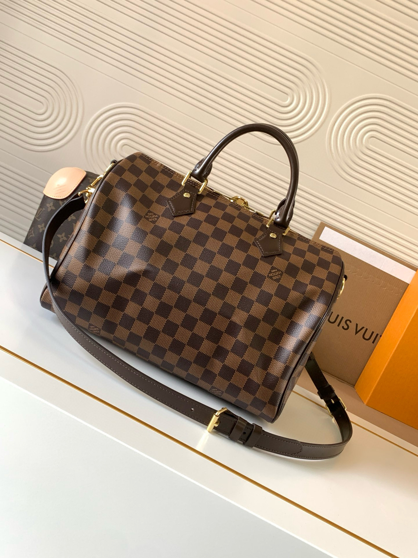 Bolso Speedy confeccionado en piel. Este modelo presenta: asas en piel enrollada, candado grabado, doble cierre, bolsillo interior y bandolera extraíble y ajustable.