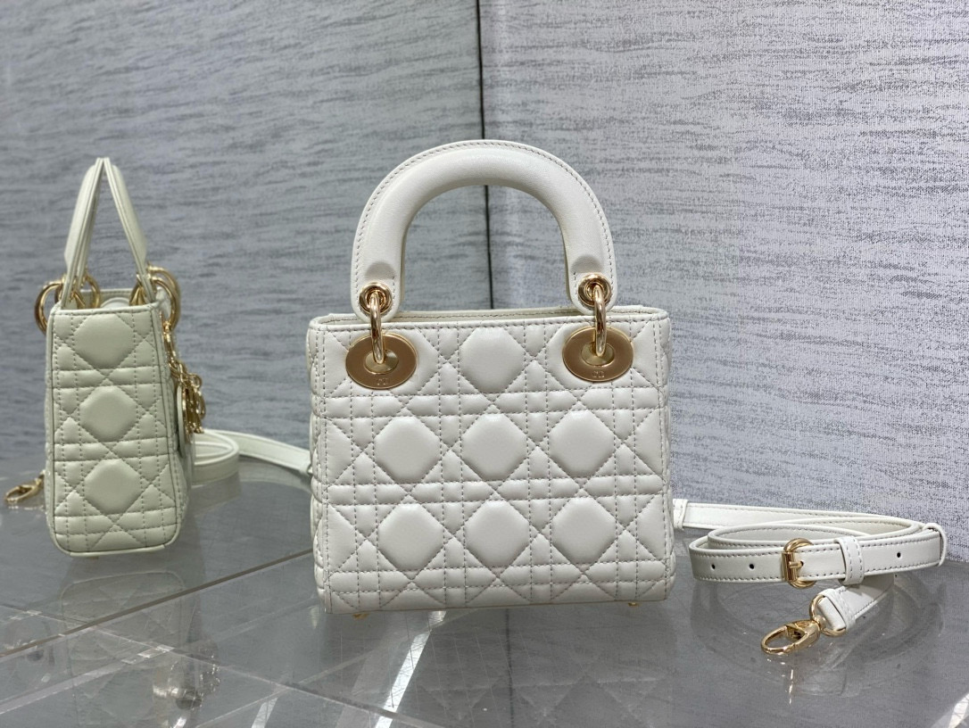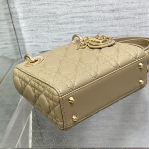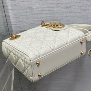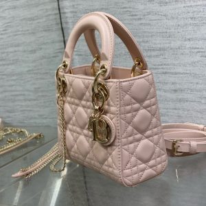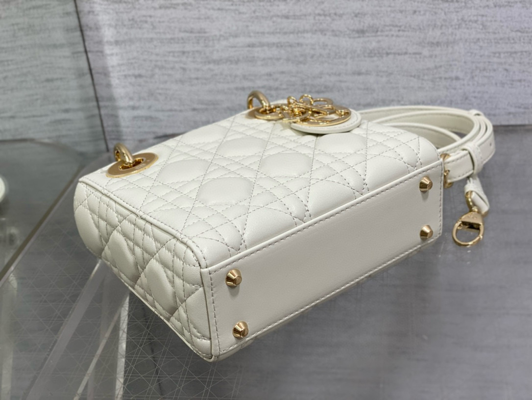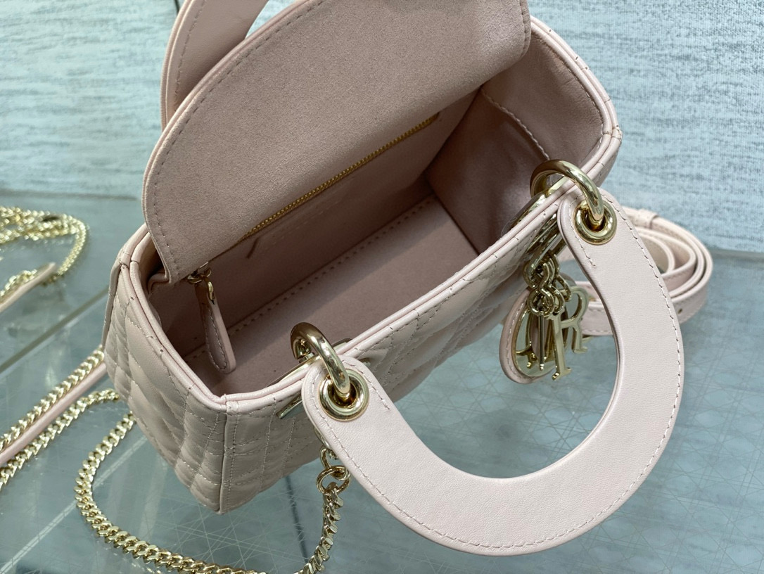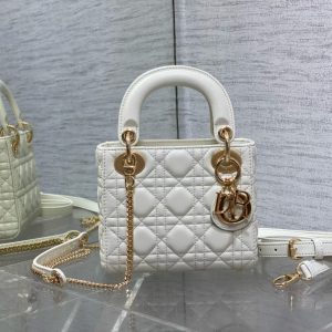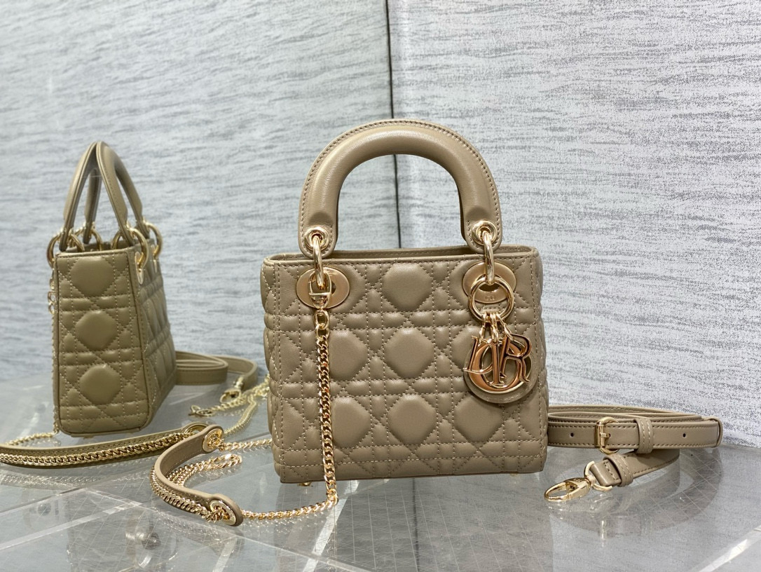 Bolso en piel de con costuras Cannage, que crean textura acolchada. Charms D.I.O.R. de metal dorado pálido, incluye una correa de cadena extraíble y puede llevarse en la mano o cruzado, bolsillo interior con cremallera y funda protectora incluida.