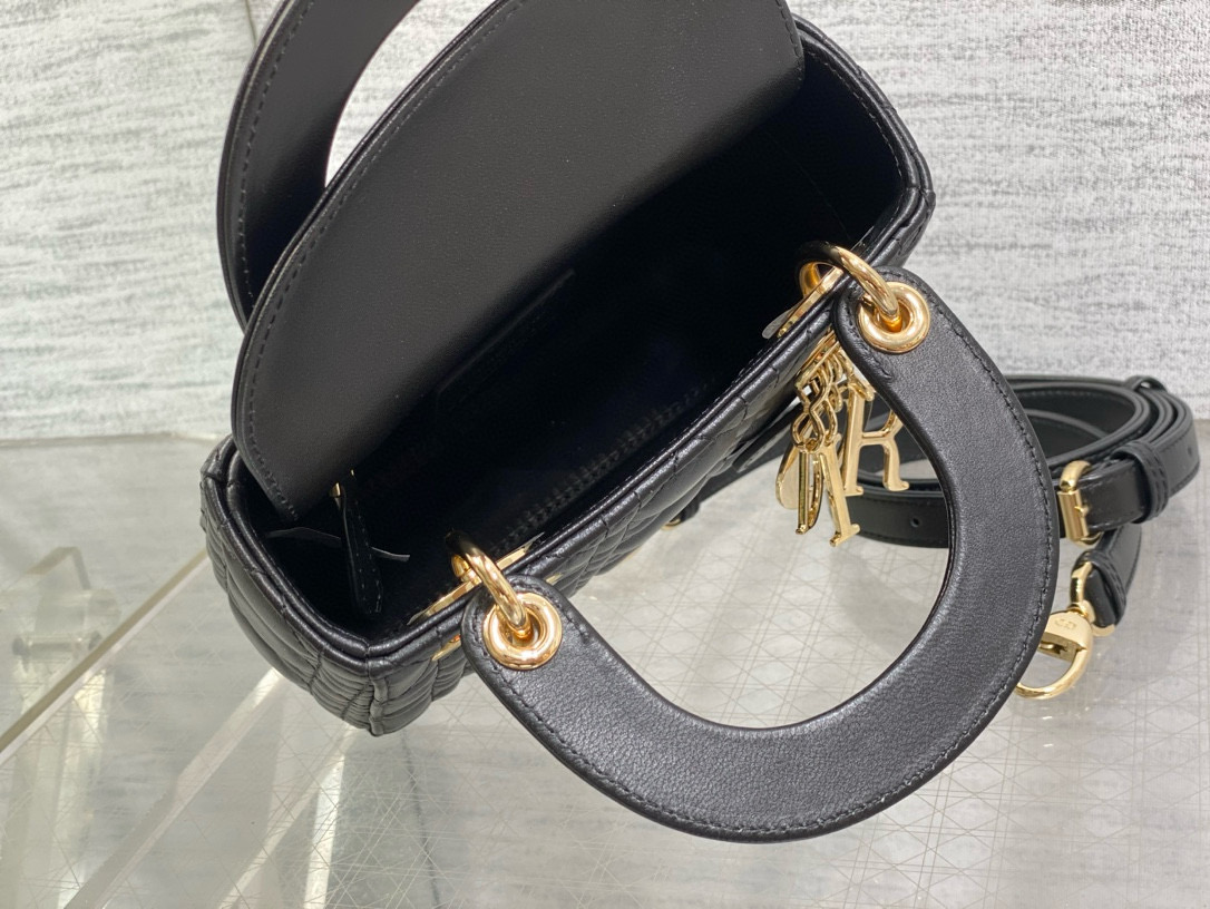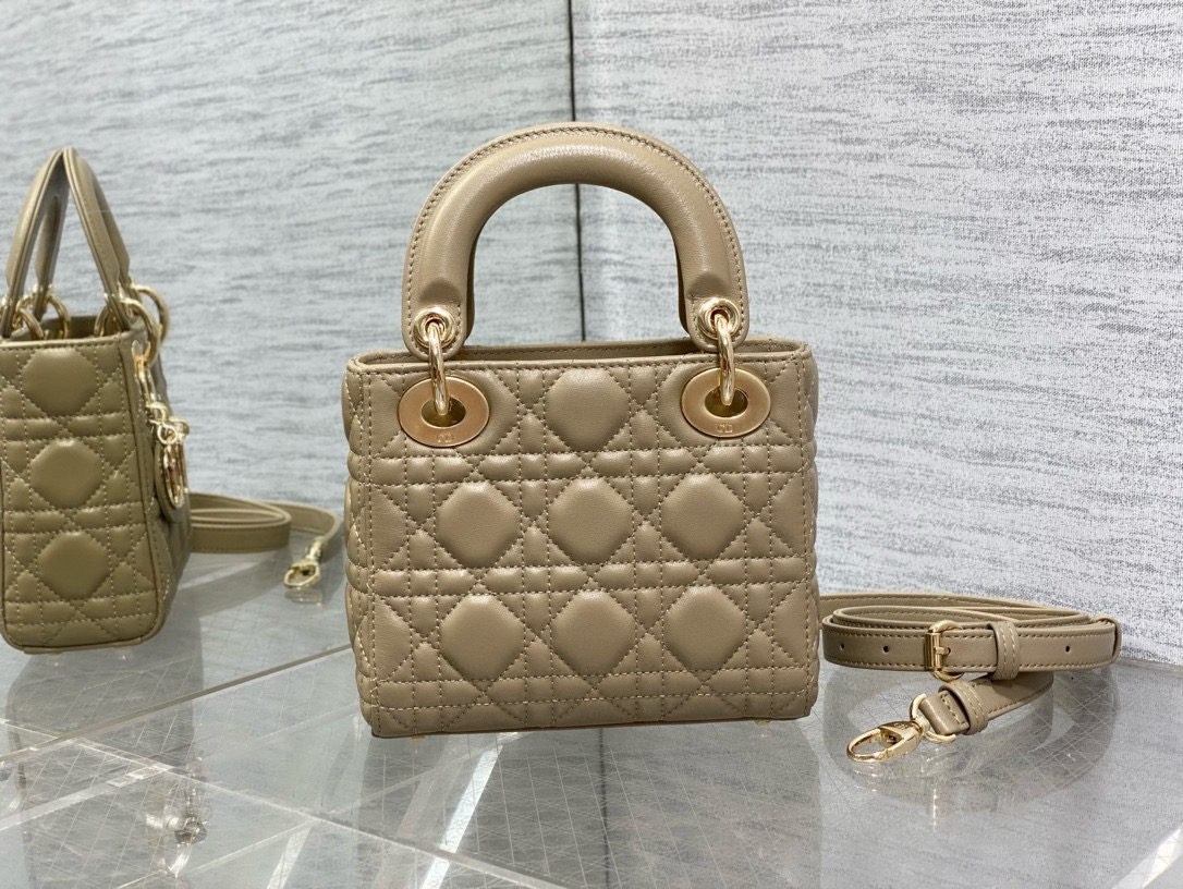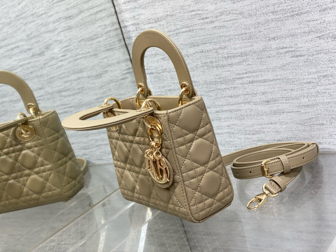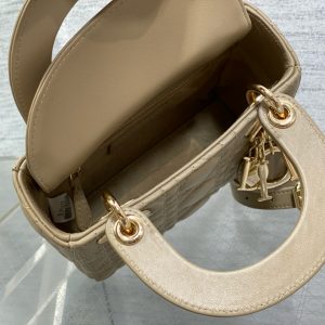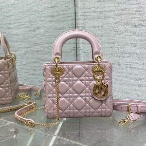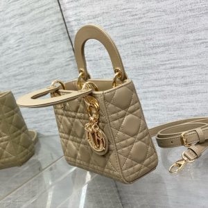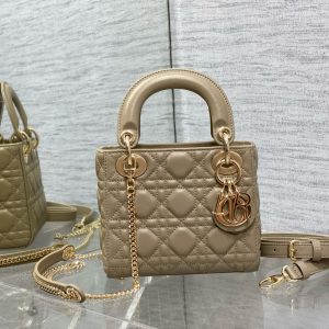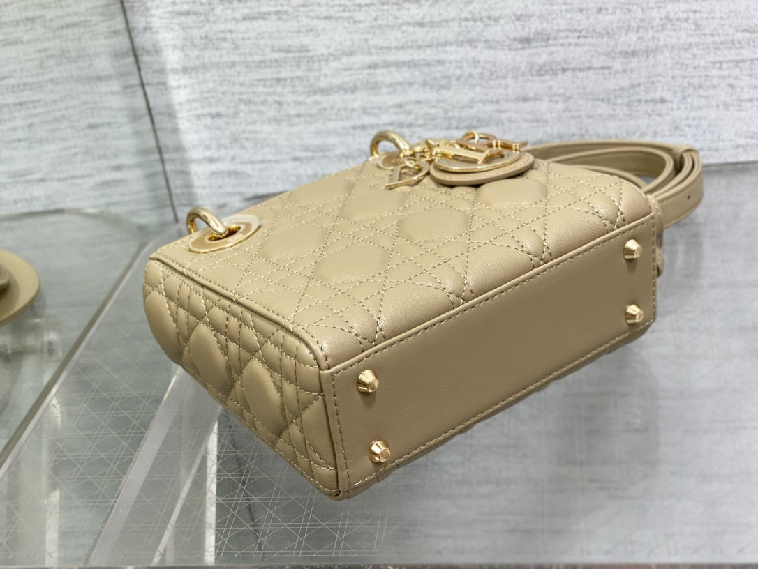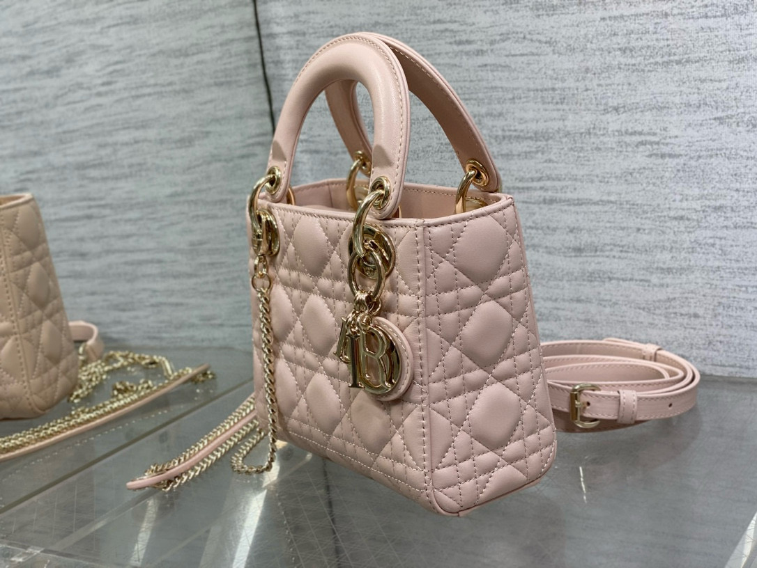 Bolso en piel de con costuras Cannage, que crean textura acolchada. Charms D.I.O.R. de metal dorado pálido, incluye una correa de cadena extraíble y puede llevarse en la mano o cruzado, bolsillo interior con cremallera y funda protectora incluida.