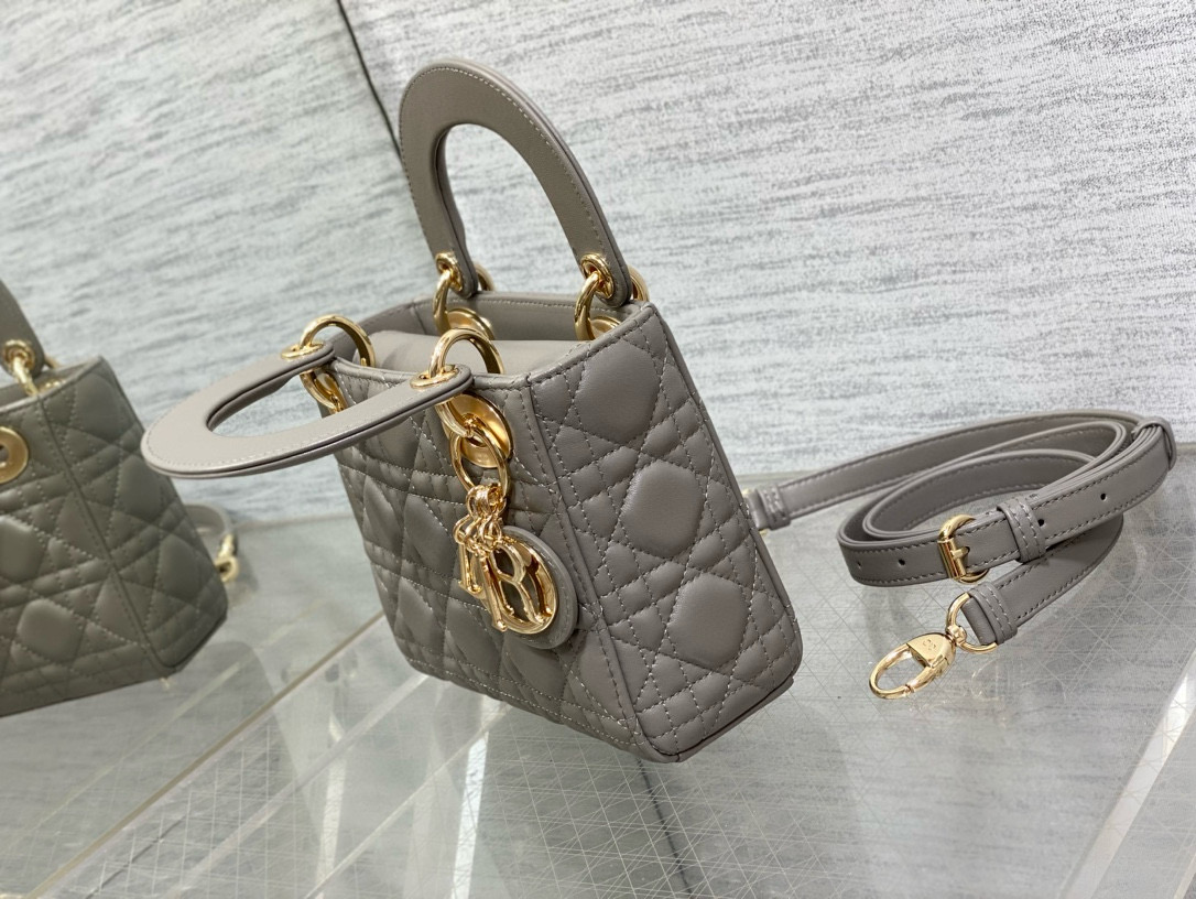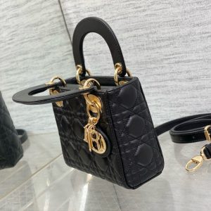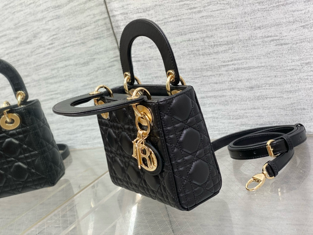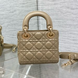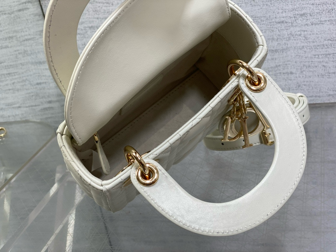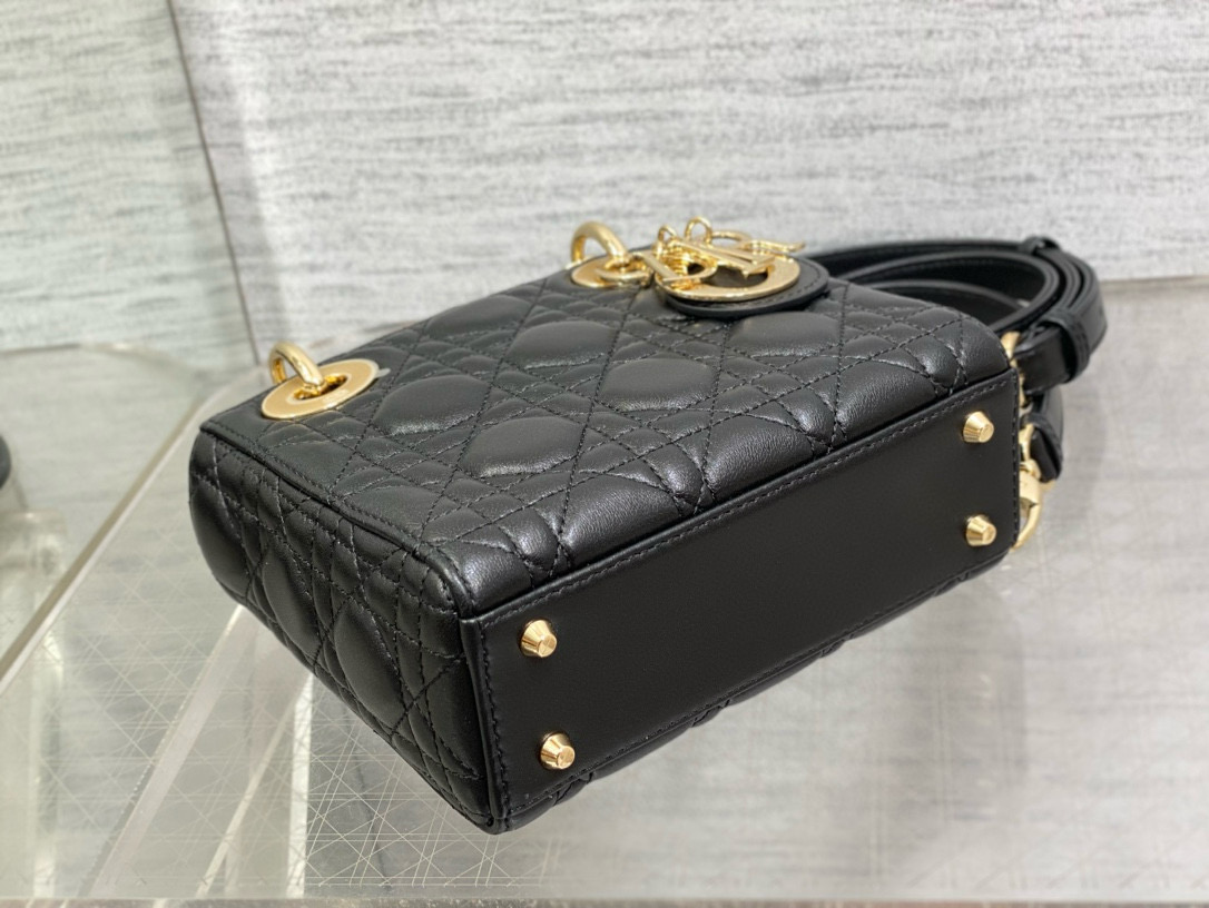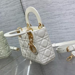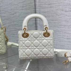 Bolso en piel de con costuras Cannage, que crean textura acolchada. Charms D.I.O.R. de metal dorado pálido, incluye una correa de cadena extraíble y puede llevarse en la mano o cruzado, bolsillo interior con cremallera y funda protectora incluida.