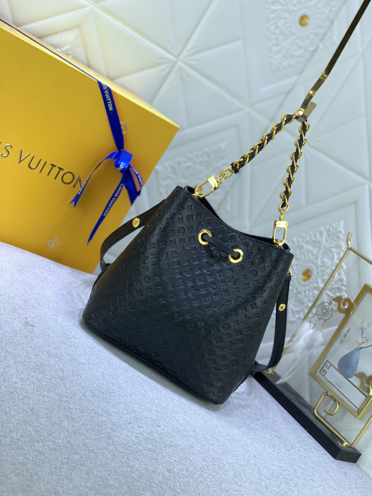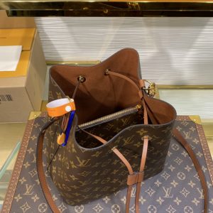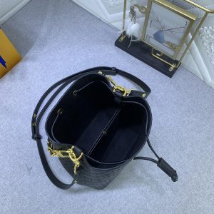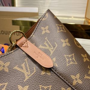 Bolso con diseño confeccionado en Canvas Monograma con un llamativo ribete en piel y forro de microfibra. Piezas metálicas de color dorado y una correa removible y ajustable que permite llevarla al hombro o cruzada. En el interior se pueden encontrar dos compartimentos y un bolsillo central con cierre.