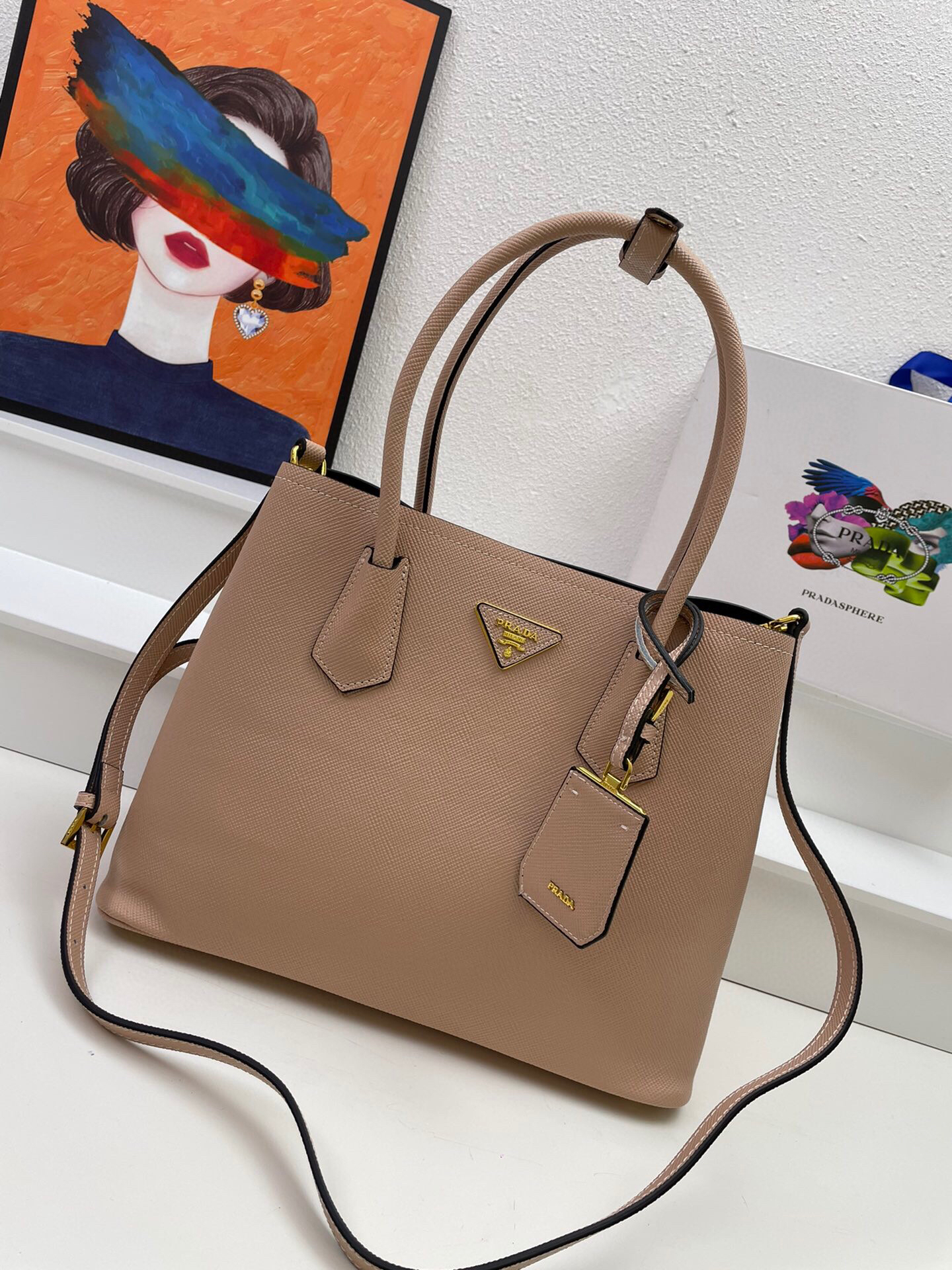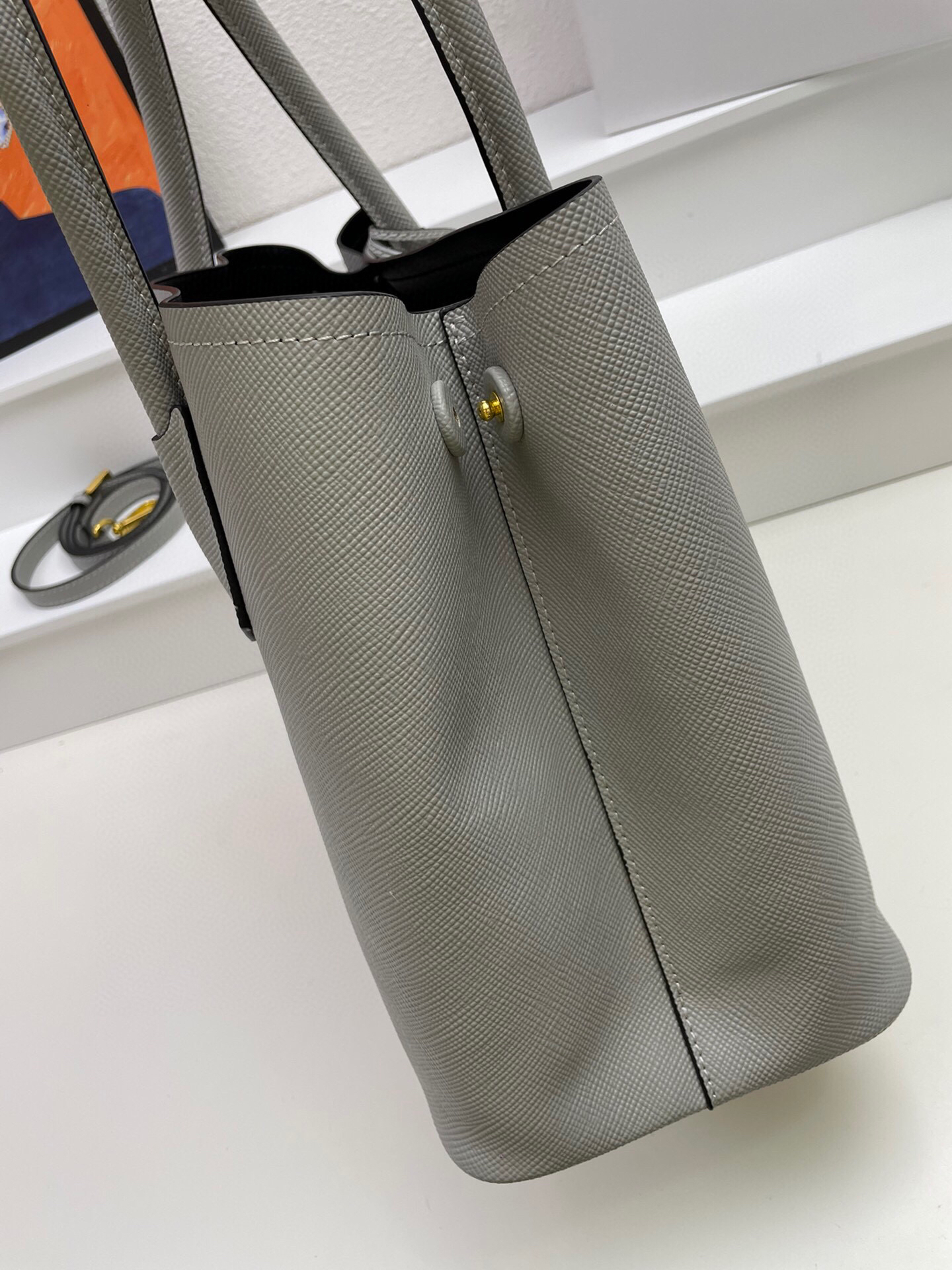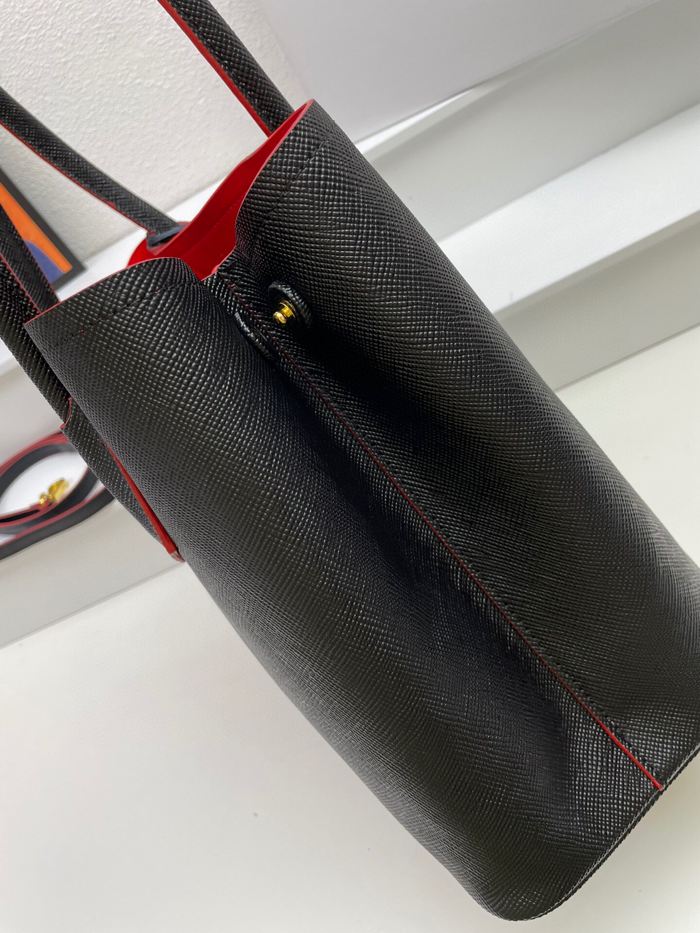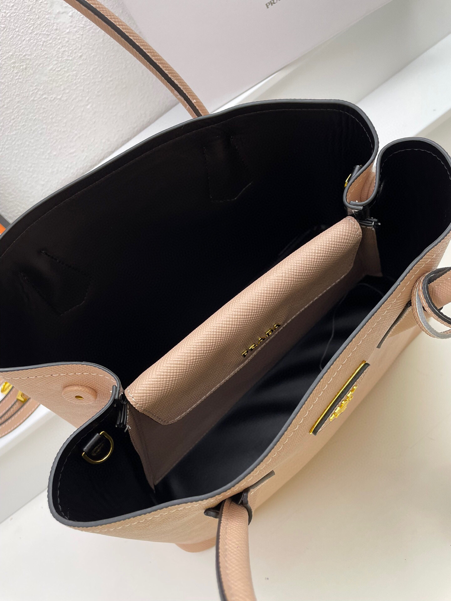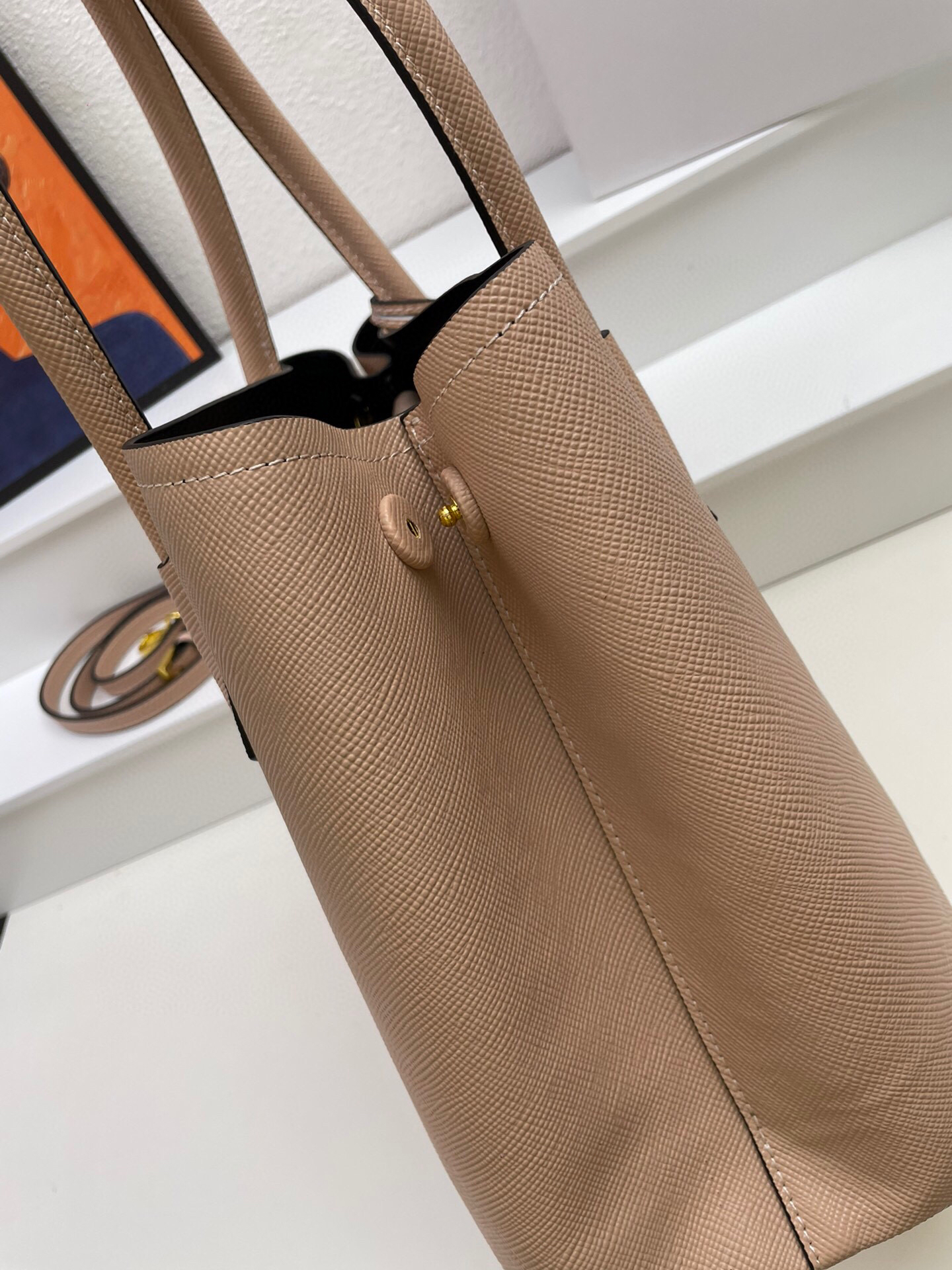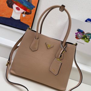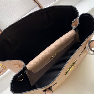 Bolso en piel cuenta con asas de piel, bandolera de piel extraíble y ajustable, llavero de piel extraíble, herrajes de metal, logo con letras de metal sobre triángulo de piel en la parte delantera, cierre a presión en los laterales, interior de napa con bolsillo con solapa y base protectora.