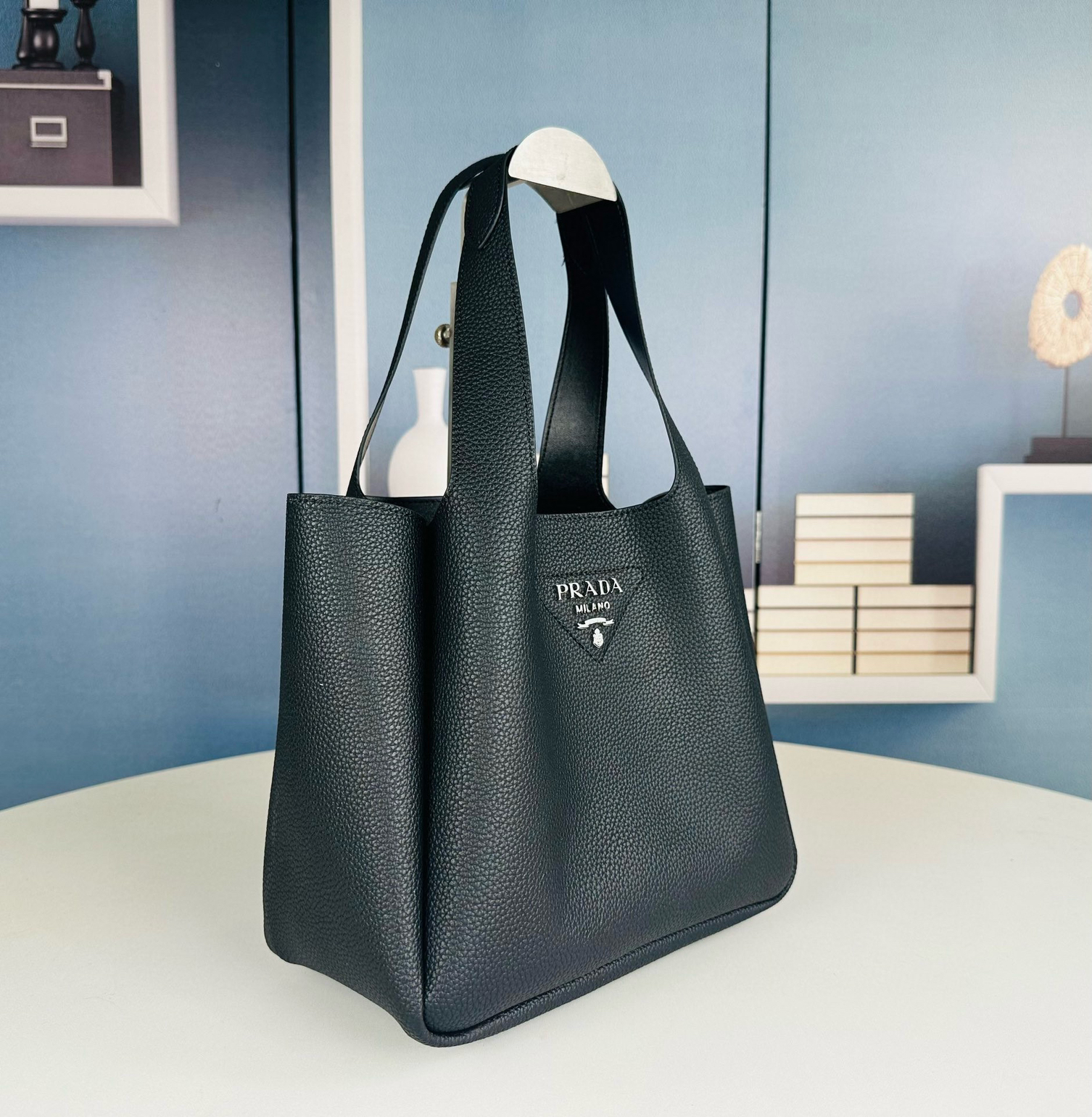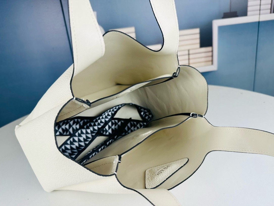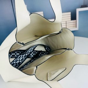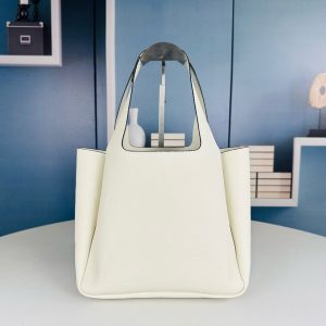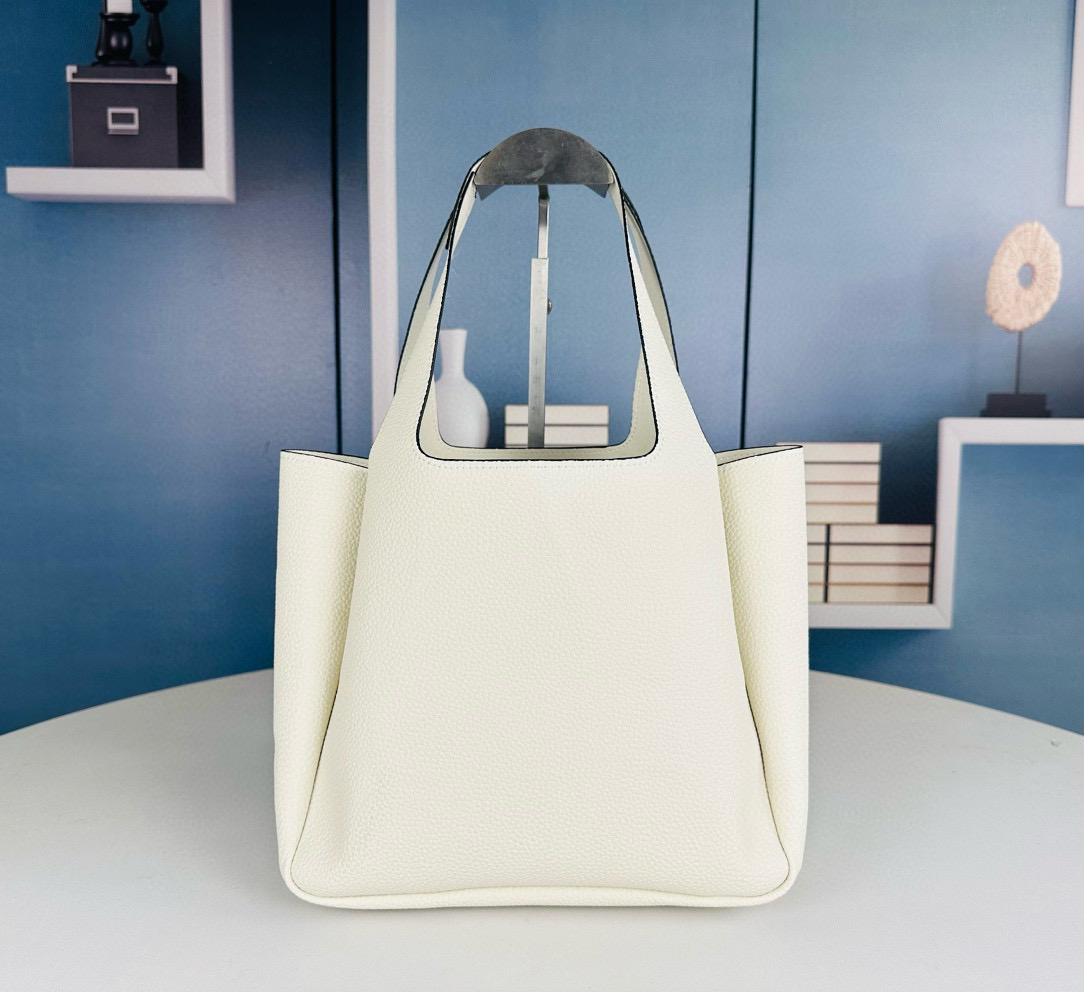 Bolso tote de piel sublimado con costuras invertidas. Cuenta con asas de piel, herrajes de metal, logo con letras de metal en la parte delantera inferior, cierre de solapa magnético y forro de napa con tres compartimentos.
